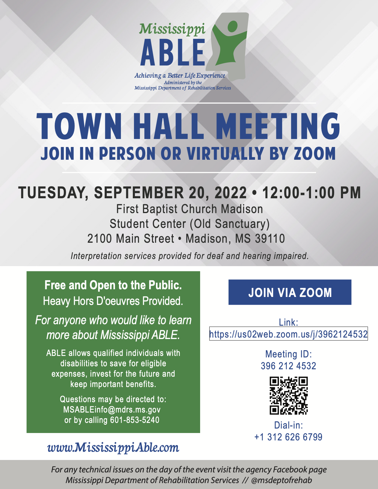 Come learn about ABLE accounts. ABLE accounts allow those with disabilities to save money without affecting or canceling their much-needed government benefits. Free to the public.