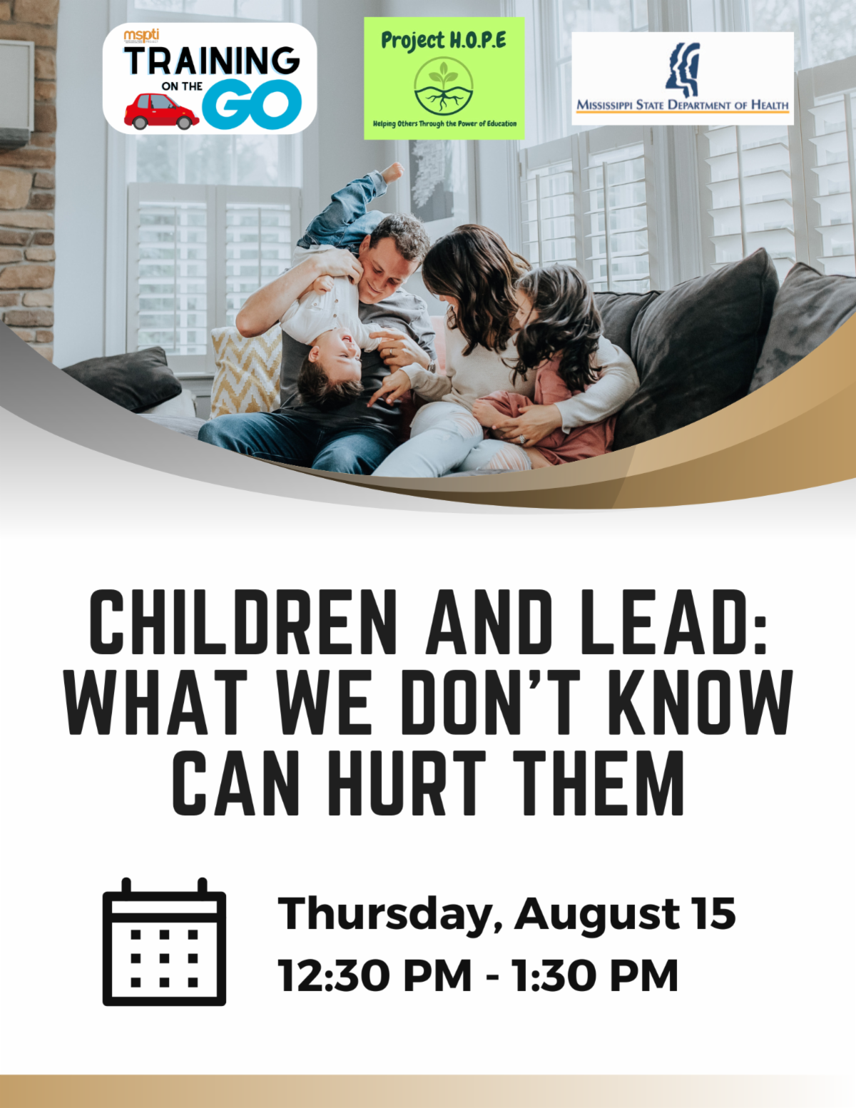 Children under 6 are the most vulnerable to the effects of lead poisoning. The good news is that lead poisoning is 100% preventable. In this fun and informative session, participants will learn about the dangers of lead, common sources of lead, lead exposure prevention, and community resources for families.