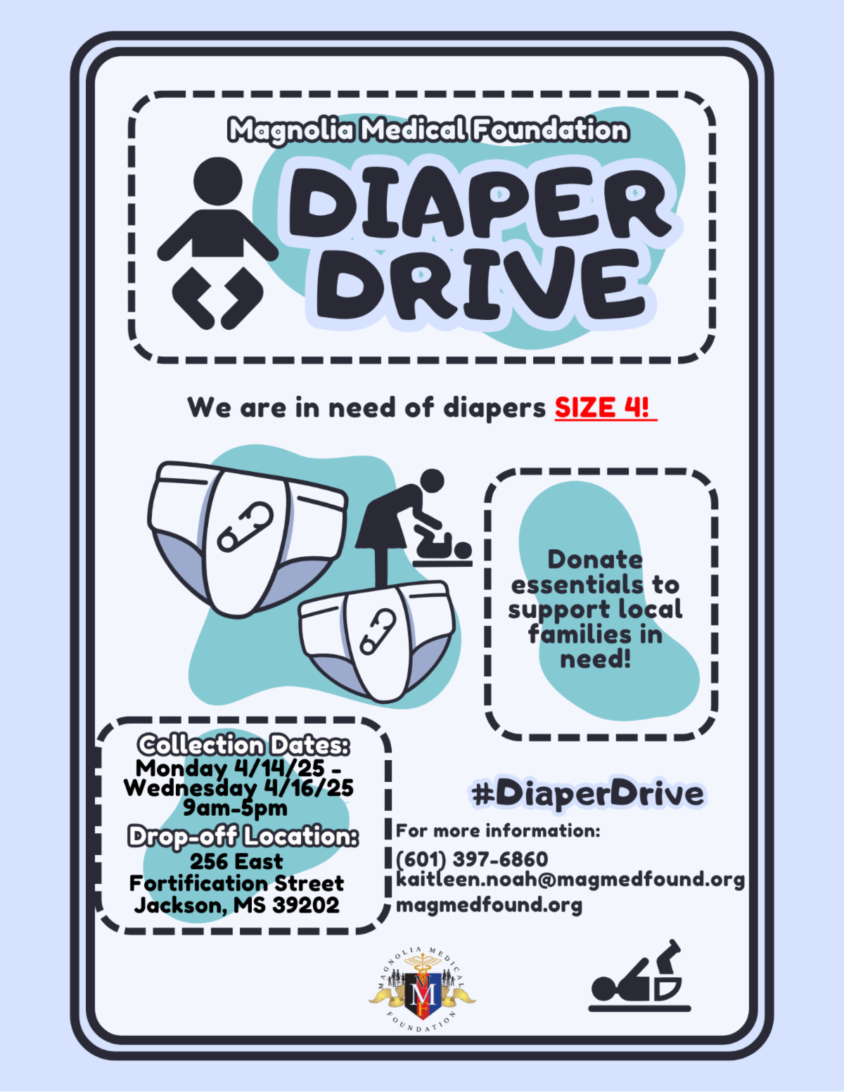 Join the Magnolia Medical Foundation in making a difference for local families in need! We’re collecting size 4 diapers to provide essentials and support for our community.