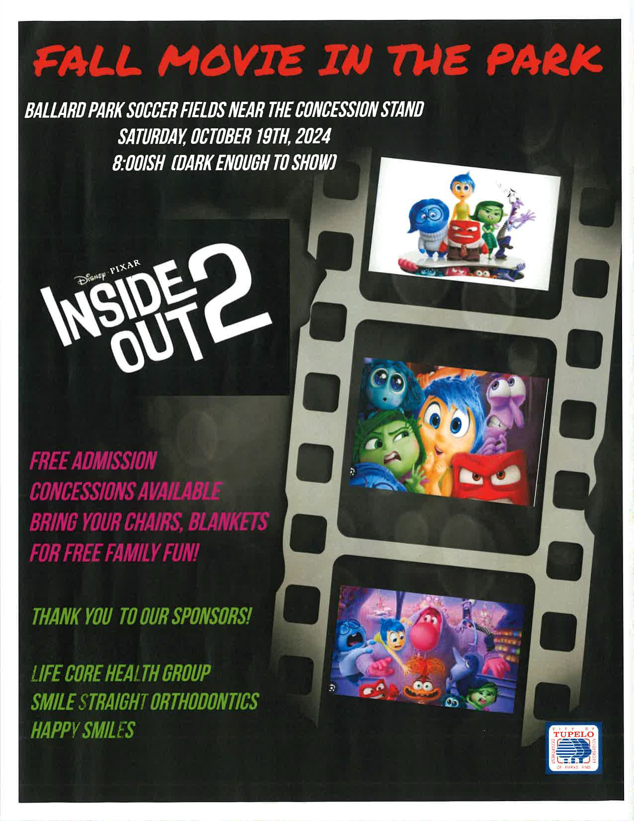 Fall Movie Night at Ballard Park showing Inside Out 2. This event is free and will have resources on mental health available for families.