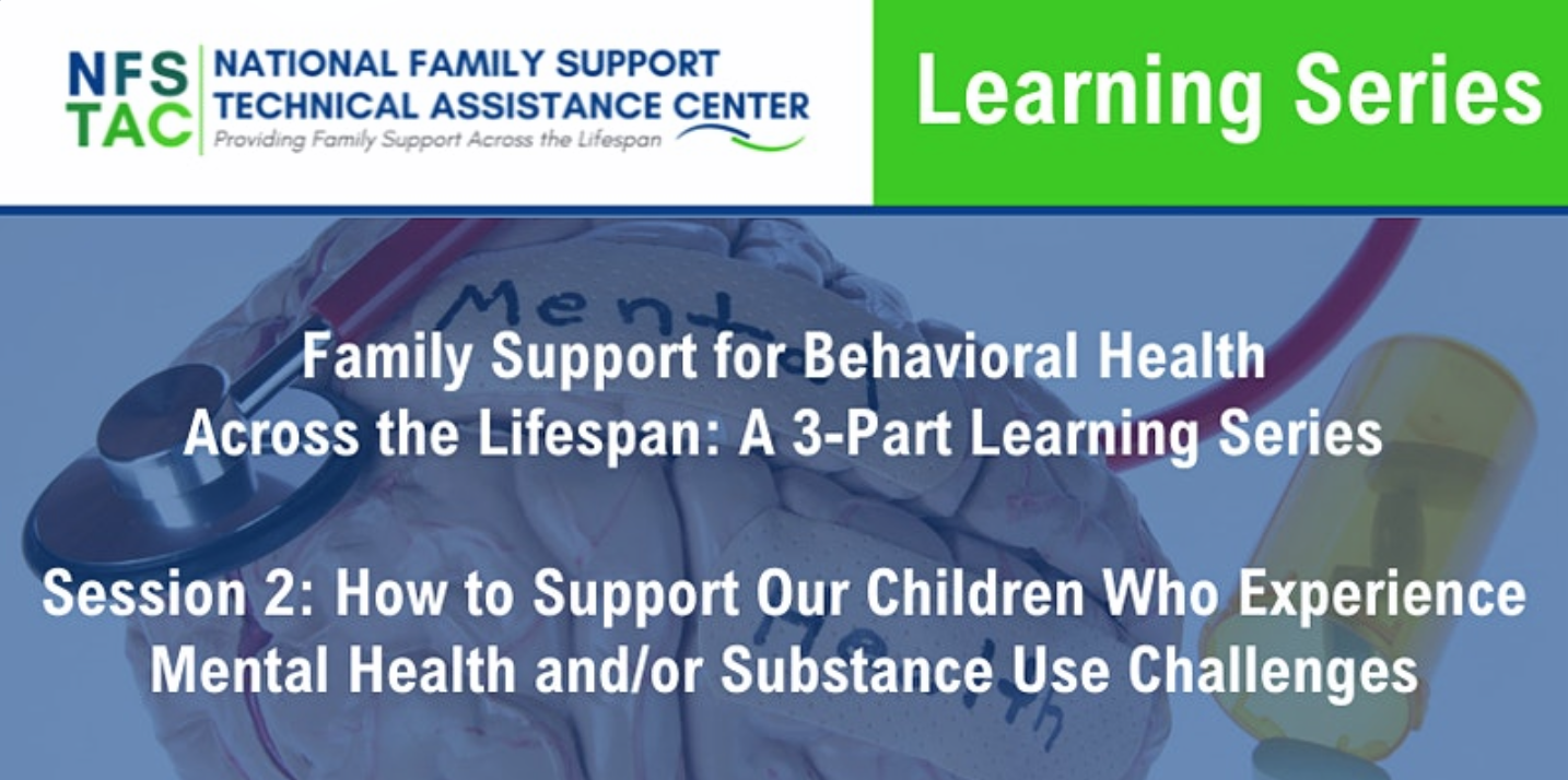 The National Family Support Technical Assistance Center invites caregivers, family peer support specialists, and other members of the mental health and substance use workforce to this 3-part series on how family members can support children who experience mental health and/or substance use challenges during their lifetime.