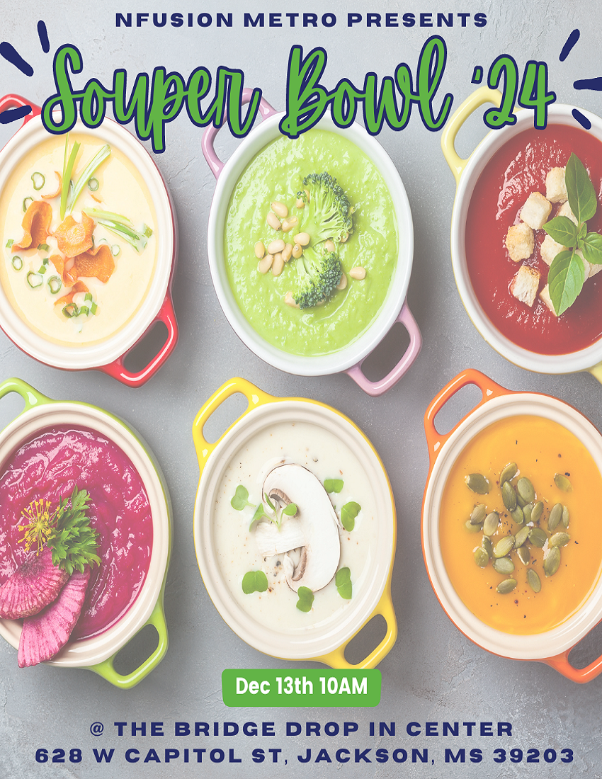 Do you know someone who is homeless or in need of a warm lunch? Invite them to a free Souper Bowl community luncheon at Hinds Behavioral Health Services’ Drop-In Center on December 13 starting at 10:00 AM.
