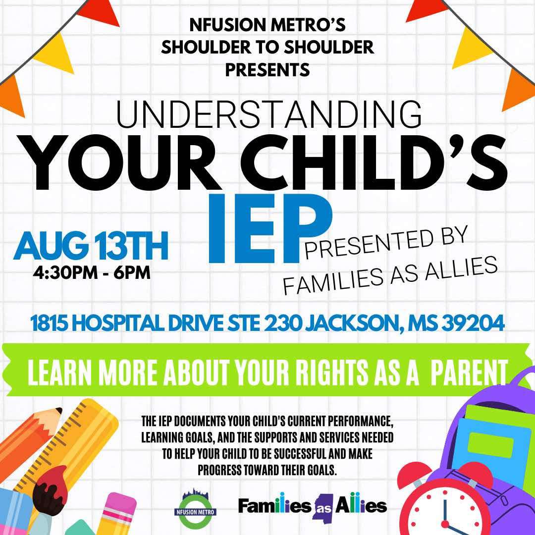 Join us for an informative session where you’ll learn about your rights as a parent. This session will cover the Individualized Education Program (IEP), which documents your child’s current performance, learning goals, and the support and services needed to help your child succeed and progress toward their goals.