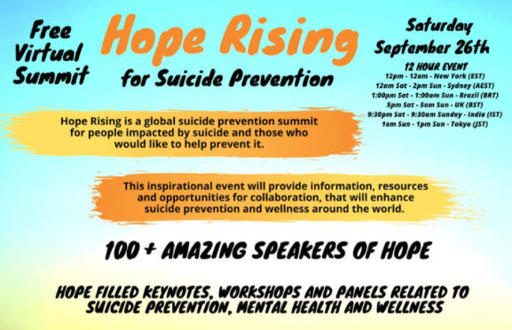 The Hope Rising for Suicide Prevention conference takes place Saturday, September 26, 2020 from 11 a.m. to 11 p.m. Central time. With over 140 sessions and hundreds of speakers, this…