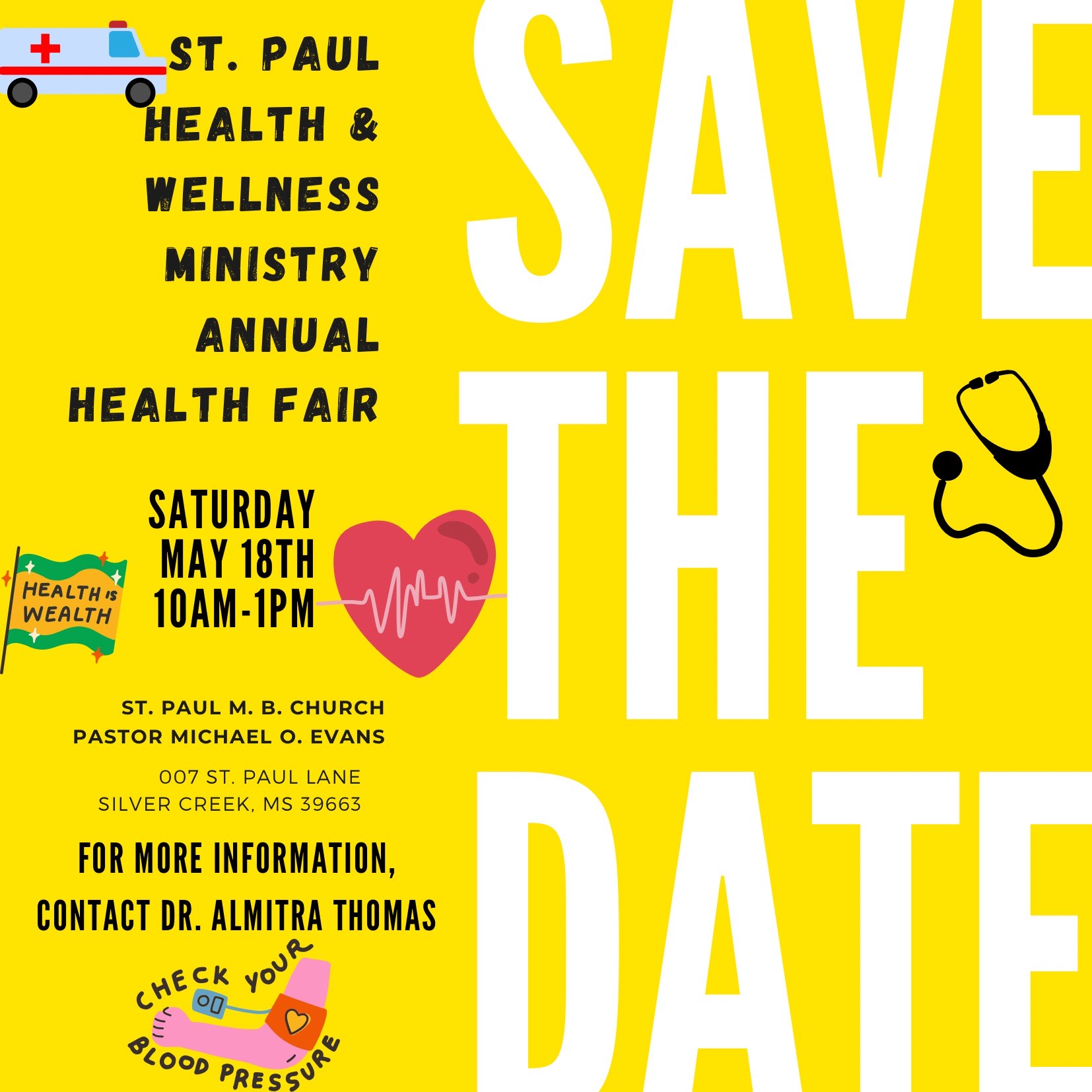 Join St. Paul M.B. Church on Saturday, May 18th for their Annual Health Fair.
