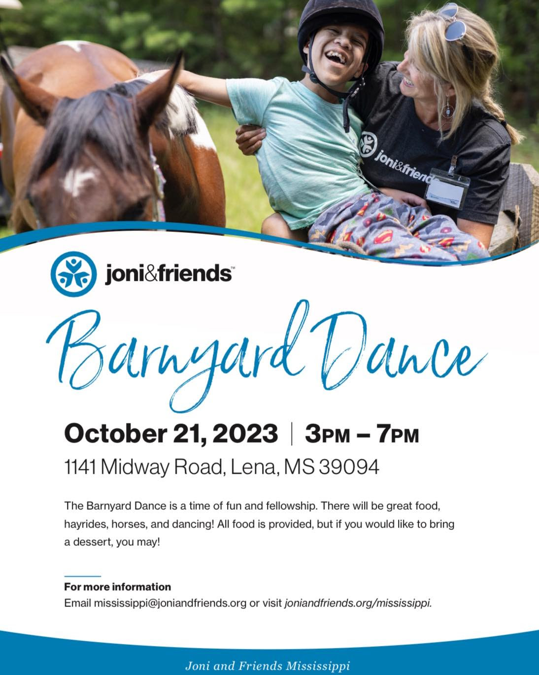 The Barnyard Dance is a time of fun and fellowship. There will be great food, hayrides, horses and dancing. |