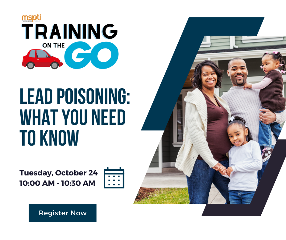 Please join the MSPTI to learn what lead poisoning is, sources of lead, signs/symptoms of lead, and prevention strategies. |